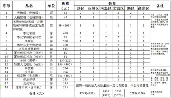 为深入推进城市执法体制改革,深化城市管理领域简政放权、放管结合、优化服务改革,营造良好营商环境、提高城市管理水平,提升政府公信力,经国务院常务会议审议通过,住房城乡建设部、财政部于2017年2月7日联合印发了《城市管理执法制式服装和标志标识供应管理办法》。 城市管理执法工作直接面对群众,执法行为与百姓切身利益密切相关。《中共中央国务院关于深入推进城市执法体制改革改进城市管理工作的指导意见》明确要求“到2017年年底,实现执法制式服装和标志标识统一”。《城市管理执法制式服装和标志标识供应管理办法》的出台,既是贯彻落实党中央国务院决策部署的具体行动,也是规范城市管理执法行为、主动接受社会监督的客观需要。城市管理执法队伍统一着装,绝不仅仅是“换个形式”,更不是福利待遇,其根本目的是要通过统一服装制式,进一步推进规范执法、文明执法,建设一支管理精细化、执法规范化、服务人性化的城管队伍,更好地为城市发展和民生服务。 城市管理执法制式服装和标志标识的设计,突出了以人为本、服务为先的价值导向,行业特点鲜明。服装颜色为藏青色及天蓝色,搭配金色标志。服装功能主要考虑适应城市管理执法工作场所多在户外、街头的实际,便于执勤活动。 在标志标识设计方面,采用了国徽、人字飘带、盾牌、牡丹花、橄榄枝等元素。国徽象征国家,以飘带组成“人”字代表人民,体现了为人民管理城市的理念,盾牌象征依法行政,牡丹花和橄榄枝组成装饰图案,表示城市让生活更美好,五朵牡丹花表示构建权责明晰、服务为先、管理优化、执法规范、安全有序的城市管理体制。制式服装及标志标识文字统一使用“城市管理执法”字样,表明着装队伍身份。 下一步,地方各级城市管理部门和财政部门将本着厉行节约的原则,陆续启动换装工作,逐步、分批更换制式服装,到2017年年底前,实现全国执法制式服装和标志标识统一 城市管理执法制式服装和标志标识 供应管理办法 第一章 总 则 第一条 为深化城市管理领域简政放权、放管结合、优化服务改革,加强城市管理执法队伍建设,统一规范城市管理执法制式服装(以下简称制式服装)和标志标识,推进规范文明执法,营造良好营商环境、提高城市管理水平,提升政府公信力,依据《中华人民共和国预算法》和《中共中央国务院关于深入推进城市执法体制改革改进城市管理工作的指导意见》等规定,制定本办法。 第二条 各级城市管理部门要加强城市管理执法队伍建设,规范穿着制式服装和佩戴标志标识,严肃城市管理执法人员仪容仪表及执法风纪,创新履职方式,规范执法行为,围绕完善事中事后管理,推进管理精细化、执法规范化、服务人性化,更好体现执法的统一性、权威性。 第三条 住房城乡建设部负责对全国城市管理执法制式服装和标志标识工作的指导监督协调,制定制式服装和标志标识的式样与标准。 各省、自治区、直辖市城市管理部门负责监督本办法及式样标准的落实。 各级城市管理部门负责本级制式服装和标志标识的采购、配发以及日常管理等工作。 第四条 制式服装制作所需经费,由个人负担工料费的30%,其余70%由同级财政予以安排;装具制作所需经费由同级财政负担。 第五条 各级城市管理部门要严格限定着装范围,不得擅自扩大着装范围和提高供应标准,严禁改变制式服装和标志标识的式样。 第二章 配发范围 第六条 地方各级城市管理部门从事一线城市管理执法工作的在编在职人员,应当在执行公务时穿着统一制式服装和标志标识。 第七条 直辖市和市、县(含县级市、市辖区)城市管理部门从事一线执法工作的在编在职人员,按照供应标准配发制式服装和标志标识。 第八条 省、自治区城市管理部门从事一线执法工作的在编在职人员,按照供应标准减半配发制式服装。 第三章 制式服装和标志标识供应种类 第九条 帽类,具体包括: (一)大檐帽(女士为卷檐帽); (二)防寒帽(布面、皮面)。 第十条 服装类,具体包括: (一)常服(春秋、冬常服,含上衣、裤子、衬衣); (二)茄克式执勤服(春秋、冬茄克式执勤服,含上衣、裤子); (三)夏装制式衬衣(长袖、短袖); (四)单裤、裙子; (五)防寒大衣。 第十一条 鞋类,具体包括: (一)单皮鞋; (二)皮凉鞋; (三)棉皮鞋、毛皮靴。 第十二条 标志标识类,具体包括: (一)帽徽; (二)肩章; (三)领花、臂章、胸徽、胸号; (四)领带、领带卡; (五)腰带; (六)标志扣。 第十三条 装具类,具体包括: (一)连帽雨衣(含雨靴); (二)反光背心。 第四章 气候区域 第十四条 制式服装根据气候区域划分配发不同品种,确定使用年限。气候区域划分为热区、亚热区、南温区、北温区、寒区、高寒区(其包括的行政区域见附件1)。 第十五条 因气候、工作环境特殊等原因,个别配发品种不能满足实际需求的,由省级城市管理部门商同级财政部门确定选配品种,报住房城乡建设部和财政部备案。 第五章 供应标准 第十六条 帽类 (一)大檐帽(女士为卷檐帽) 首次男士发大檐帽2顶、大檐凉帽1顶,女士发卷檐帽2顶、卷檐凉帽1顶,热区、亚热区、南温区使用4年,北温区、寒区、高寒区使用5年,期满换发大檐帽(卷檐帽)1顶,大檐凉帽(卷檐凉帽)1顶。 (二)防寒帽(布面、皮面) 热区、亚热区、南温区首次发布面栽绒防寒帽1顶,热区、亚热区使用7年,南温